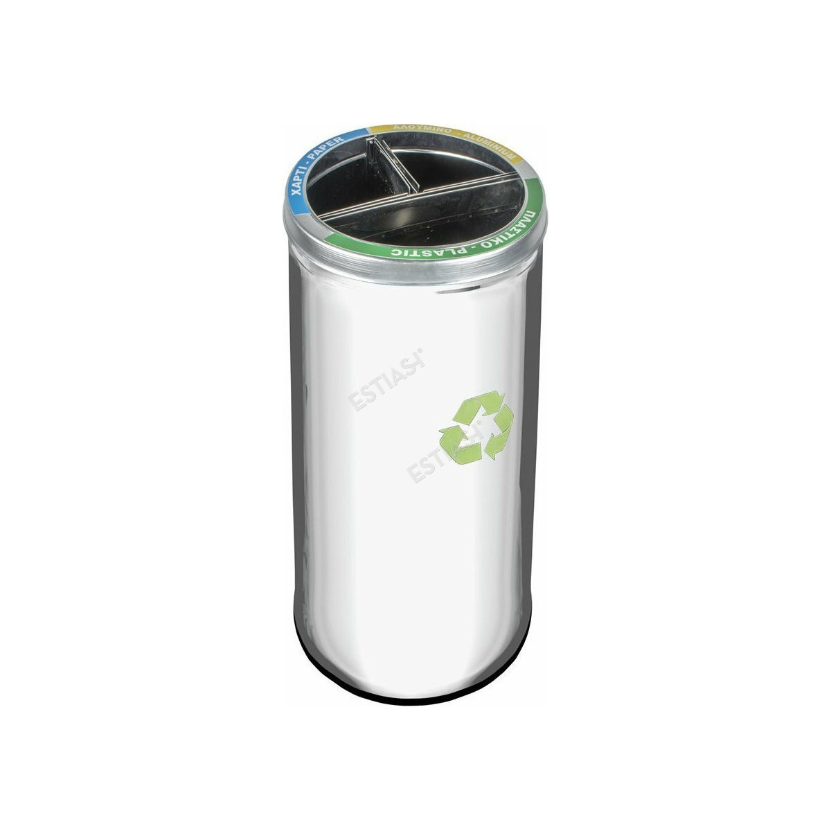 - 3-position stainless steel lid for recycling different materials (plastic, paper, aluminum)